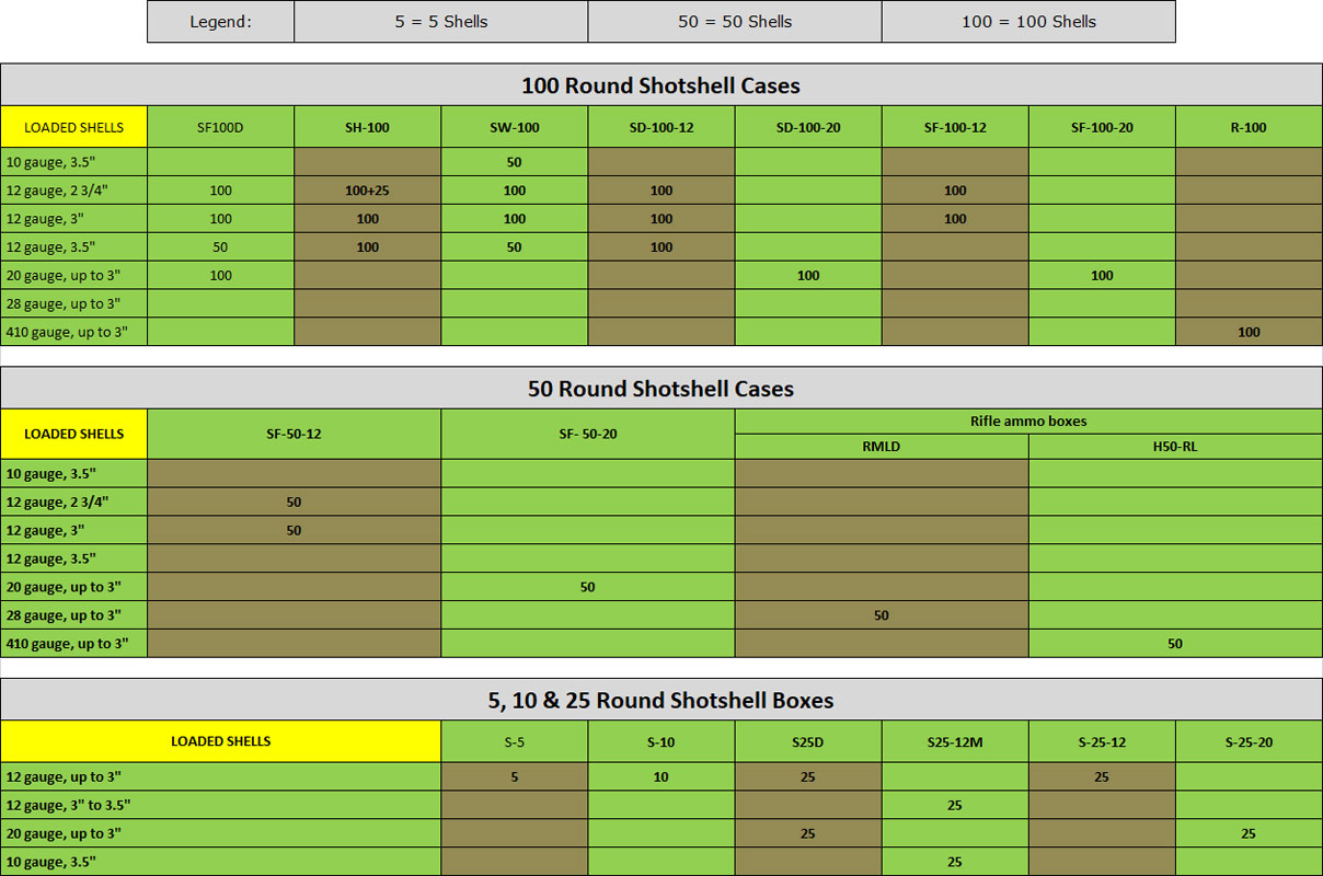 The S25-12M holds 25 x 10 gauge or 12 gauge shotshells in the down position.